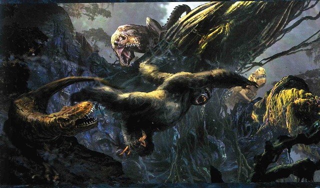 ’05年に上映された決定版(だと思う)『キングコング』の監督P.ジャクソンの言葉。ファンタジー超大作を製作するに当っての、見事な覚悟である。 [注]その特撮の水準を示す一例を下に掲げる。これは撮影前の絵コンテだが、この イラストがそのまま映像になっているのが凄イ。特にコングの足にご注目を。コングは恐竜達と戦って崖を落下しながらも、愛するアン・ダロウを左足でシッカリと掴んでいるのである!